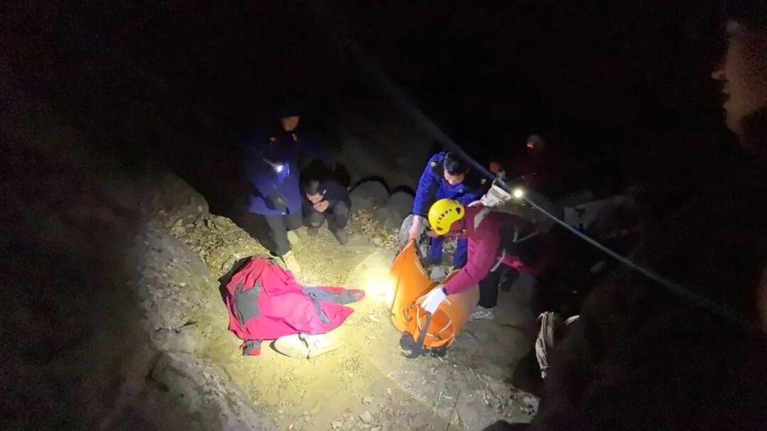 经过近一个小时的紧张搜寻,22时21分,救援人员终于在一山根处发现了被困老人。此时老人蜷缩着躺在冰冷的地面上,头部有明显受伤痕迹,救援人员立即上前查看,确认老人尚有生命意识后,迅速脱下身上的保暖衣物盖在老人身上,防止其体温快速流失,同时将老人固定在担架上,避免搬运过程中造成二次伤害。