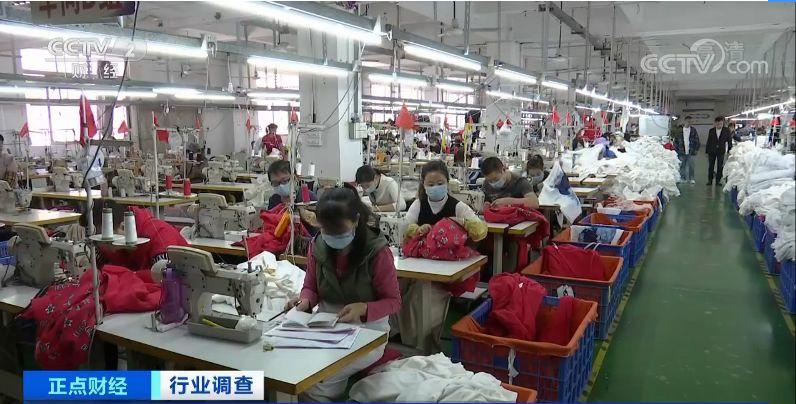 记者来到位于广东东莞的一家服装工厂看到,临近午休时分,生产线上的工人们还在忙碌。负责人称最近都在加班加点,为“双十二”和圣诞节的订单赶工。