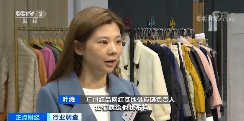 广州红品网红基地供应链负责人 叶薇:客户在直播间下单之后,我们就给他找布料、找加工厂,大概48小时可以把两万件衣服做出来,因为我们有很多合作的厂家,对于商家来讲,就不用压货、压库存。