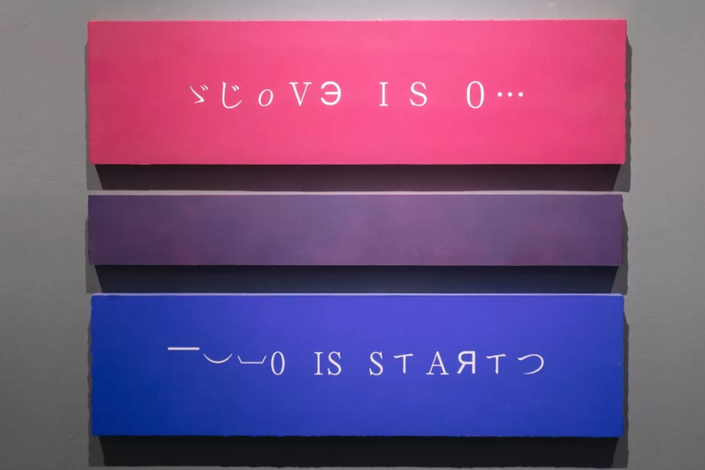 “与男人谈精神的恋爱,与女人做肉体的缠绵— k以此作为自己的情感信条,在网络的流言蜚语中,她被描述为一个叛逆与滥交的少女,而她一向对此不屑。What is Love?无意间聊到这个腐朽的问题,它更像是一句感叹,我们在幽默欢愉的气氛中记下这些文字。k的艺术课里,它们被制作成一系列三色旗式的绘画。”(王将)