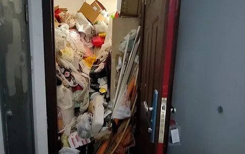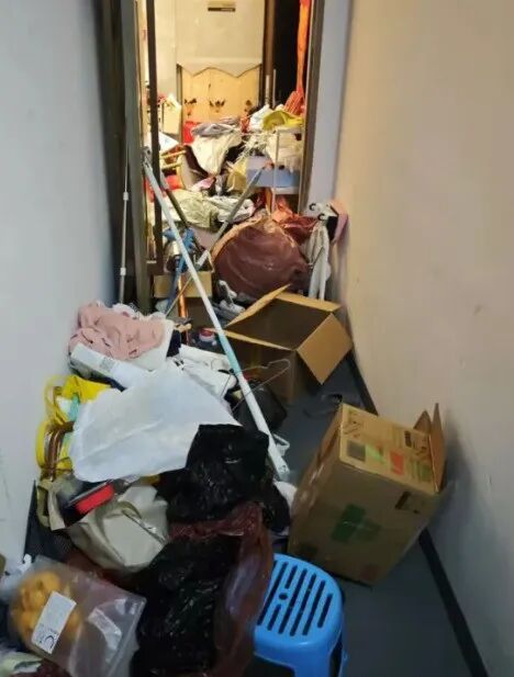 其实这样类似的事情,之前也有报道:5月30日上午,黄浦区西藏南路“中海建国里”小区的多位业主反映,他们楼里的一户独居老人,不仅在家中堆满了各种垃圾,就连家门外的公共电梯间也铺满了各类生活物品,导致整幢楼都充斥着腥臭味。