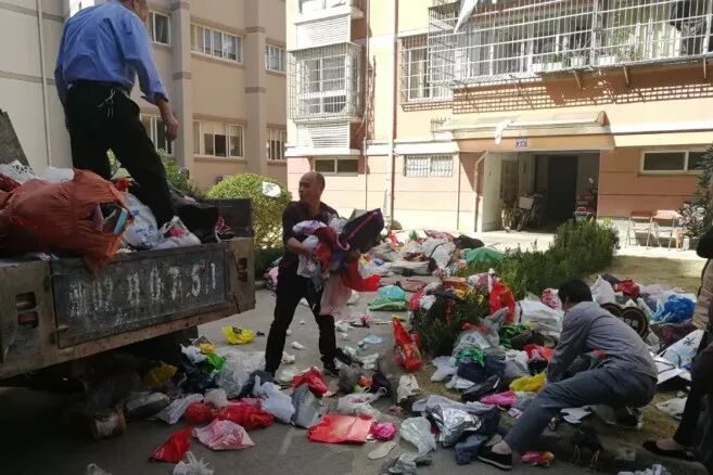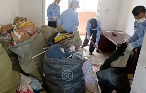 浙江一小区也出现过类似的事件。2019年,宁波大榭金海岸花园社区工作人员从一户独居老人家里清理了三千多斤的破烂废旧物。