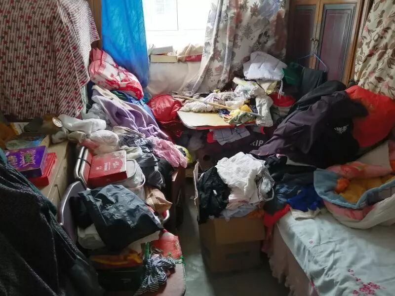 周老太太两室一厅、80多平方米的房子,除了家具就是破烂。“推开门插不进脚,卫生间的杂物堵住了窗户,屁股大的厨房转个身后面是破烂,顶到天花板。”社区工作人员说,社区和物业三个人忙活两天,小集卡车运了13趟才把垃圾清完,一卡车毛估估两三百斤,13车少说也有三千斤。