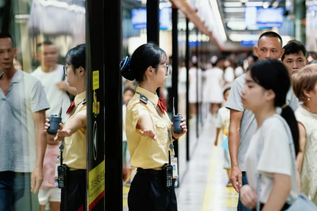广州地铁提醒,客流高峰期间,进站时如遇高峰管控,请听从工作人员的指引有序进站乘车。