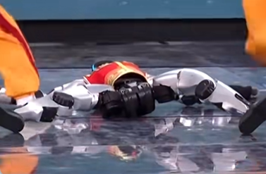 春晚《武BOT》节目中,一台宇树机器人打着醉拳“摔倒”在地,“是故意的还是不小心的?”