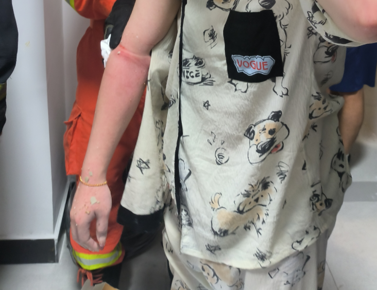 最后女子成功脱险,右臂红肿,有轻微刮伤。