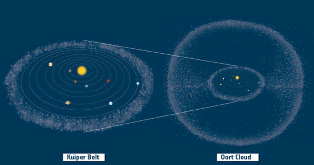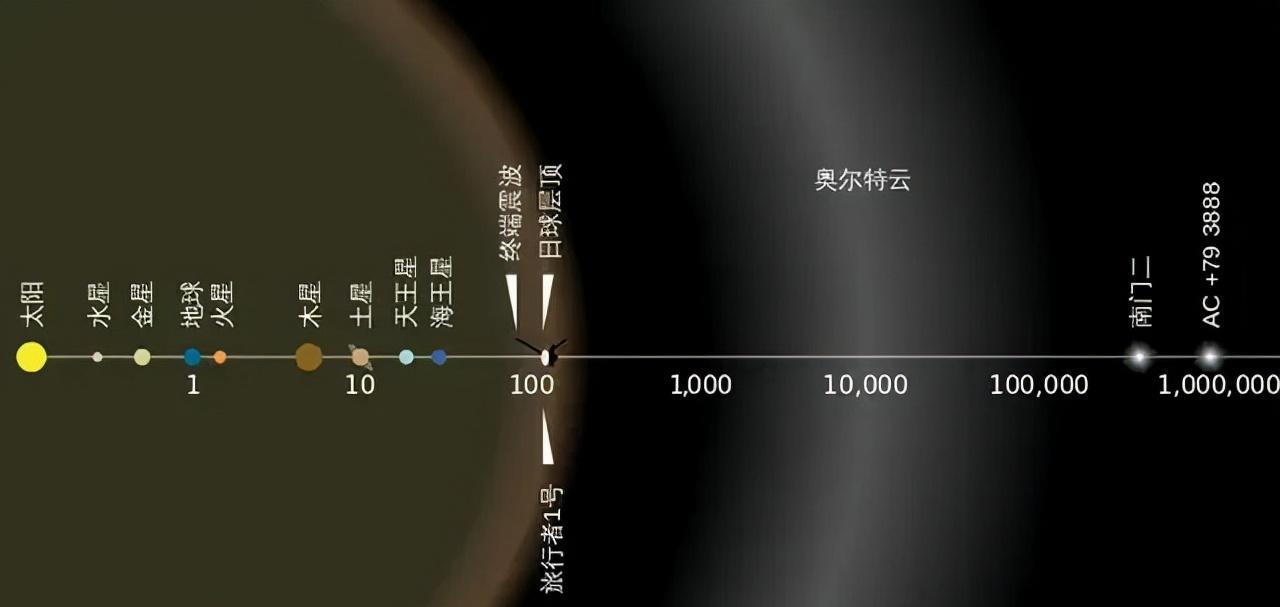 接下来它们面临的,是飞出真正的太阳系边界,也就是一光年外的奥尔特云,看到这里很多人会有疑问了,因为太阳系在宇宙中并不是什么大的星系,难道冥王星外围的柯伊伯带不算太阳系边界吗,难道日球层不算太阳系边界吗?