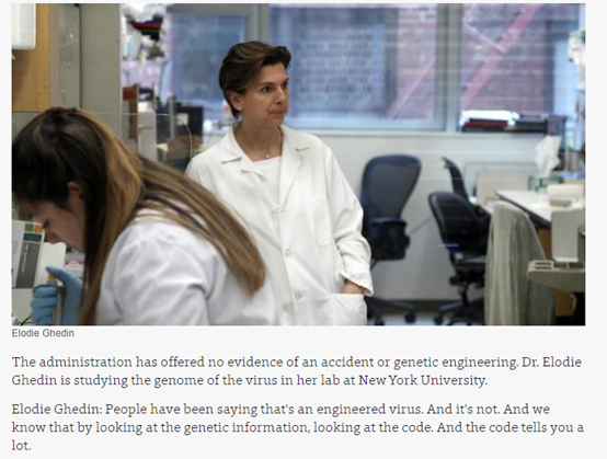 “60分钟”栏目也指出,目前许多病毒学方面的专家都认为,新冠并不是并不是人造的,而是从野生动物身上传播给人类的,就像2003年的SARS病毒一样。