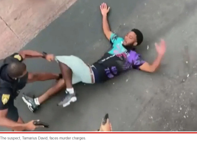 据报道,警方接到报警电话赶到后,观察到戴维斯拿着枪试图打开一扇上锁的门。一段视频显示,戴维斯在事发现场旁边的一条小巷里大喊,“是我干的。我做的。”警察命令他放下武器,他遵守了命令,随后被拘留。