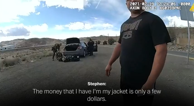 据美国《华盛顿邮报》报道,前美国海军陆战队斯蒂芬·劳拉因为驾车时跟在一辆油罐车后太近,被内华达州公路巡逻队的警察交通截停,理由是“阻止非法毒品、武器和货币走私”。但警方对其车辆进行搜查后,在没有对他提出任何指控的情况下,竟没收了在车上搜出来的8.7万美元现金。