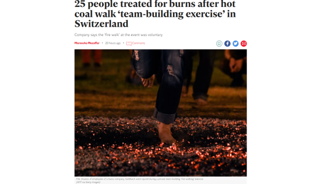 瑞士公司搞“团建”出意外,赤脚走火炭十几名员工重伤住院