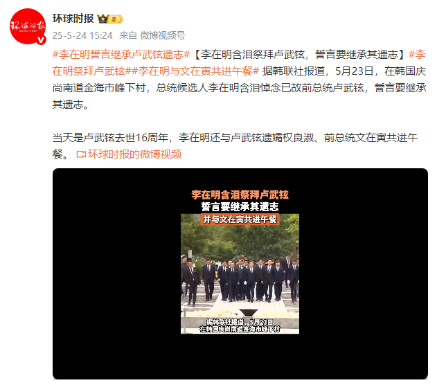 韩媒:李在明含泪祭拜卢武铉,誓言要继承其遗志