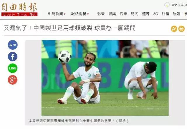 台媒这篇文章称,此次世界杯的官方指定用球都是阿迪达斯的“Telstar 18”。文章称,本届世界杯尚在小组赛阶段,就在法国对澳大利亚、阿根廷对冰岛以及沙特对乌拉圭的3场比赛中,出现了4起足球漏气的情况,还一度影响到比赛进程。