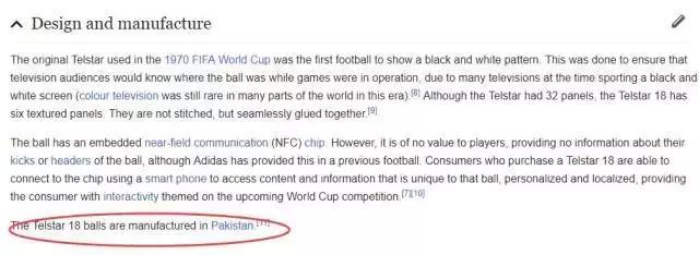 最后文章不忘“点题”,称:“据了解本届世足指定用球是由中国东莞一家专门生产比赛用球的工厂所制”。