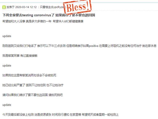 对此,一家美国华人论坛上曾有是黎女士“同事”的人表示,这是因为医院不让她住院,也不给她治疗。该“同事”还称自己也在考虑如果确诊了要不要“逃回国”。