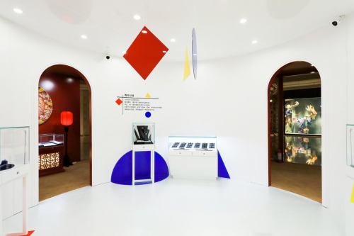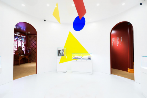 “西方幻境”主题展厅,以包豪斯现代风格为灵感,采用圆形、菱形和三角形三种品牌符号元素,与经典的红、黄、蓝搭配,用流畅简单的几何线条诠释了“Less is More“的包豪斯现代设计理念。用时尚与极简的几何美学演绎西式珠宝,探索西方艺术的万千旖旎。