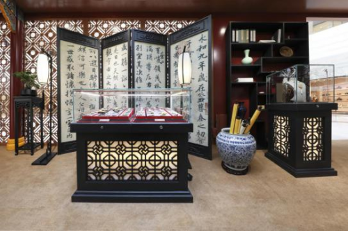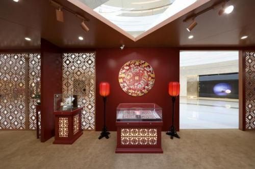 “东方绮梦”主题展厅以故宫文化为灵感,解读宫廷生活的艺术魅力。穿过幽红的故宫门廊,走进御书房品味帝王生活的书香雅韵,龙凤呈祥下感受皇家婚庆的一派祥瑞,静享故宫庭院的闲情逸致。穿越时光,寻味东方艺术珠宝的宫廷之韵。