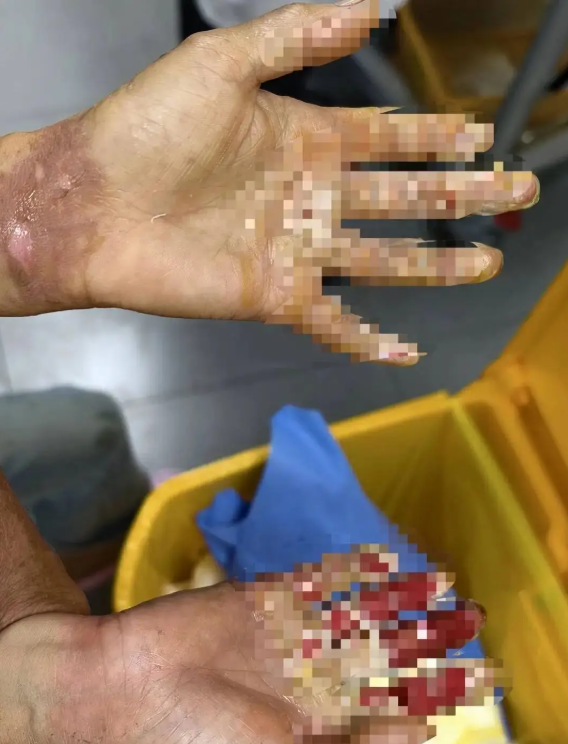 孩子母亲的手也被烧伤。图源:封面新闻