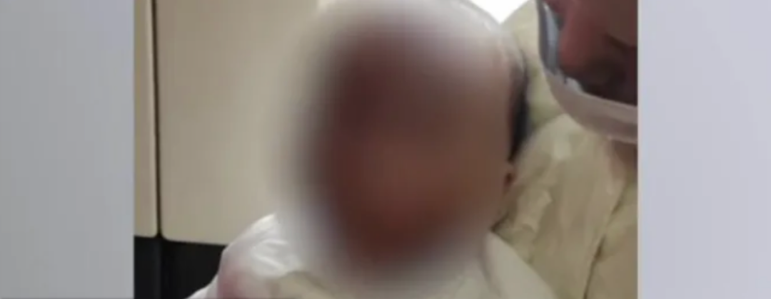 贵州兴义,一名8月大的男婴不慎从婴儿车上摔进火盆,面部及左手被烧伤,导致孩子烧伤部位皮肤脱落,只能靠注射器进食。