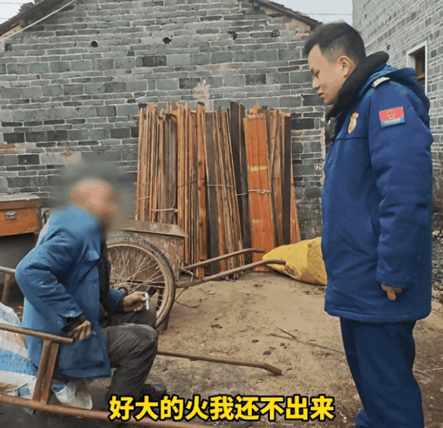“好大的火,还不出来等下被烧死……”大爷用烟头烧着老房后,再次淡定抽起“事后烟”?