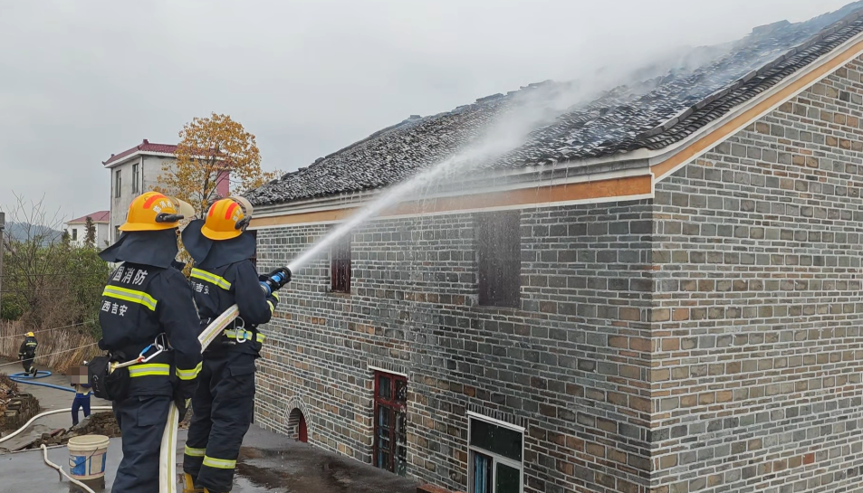大爷在事后抽“压惊烟”。图源:吉安消防