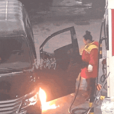 2025年2月,天津津南一处加油站内,一车辆在加油时,油箱突然发生泄漏。加油站员工发现后果断拔掉油枪并提醒车主,在车主准备趴下身查看时,静电引燃地面泄漏的汽油,致车辆瞬间起火。