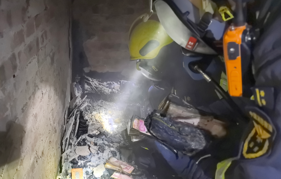 消防员在火场找到现金。图源:四川消防