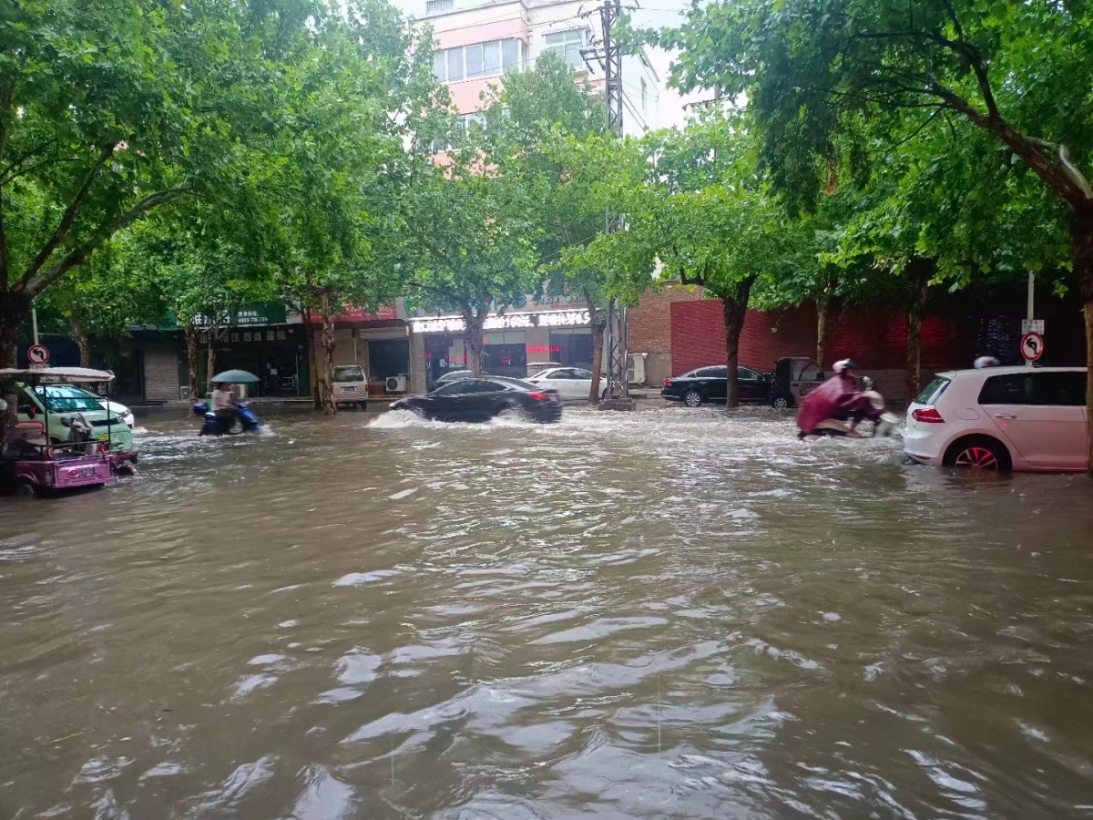 (许昌市区21日晚出现了明显的积水)
