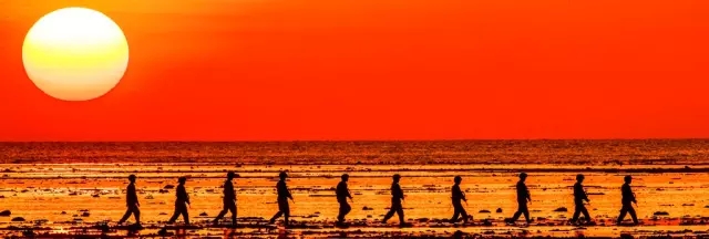 ▲赶海的渔民,斗笠下是幸福的微笑。