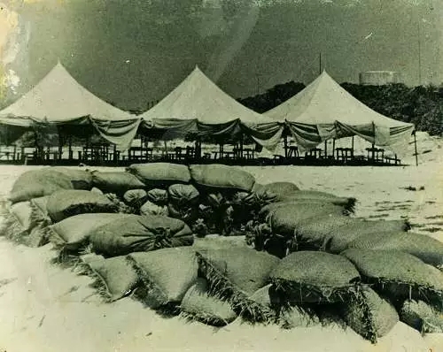 ▲1979年4月的珊瑚岛,官兵们还住在帐篷里,防御工事亦十分简陋。