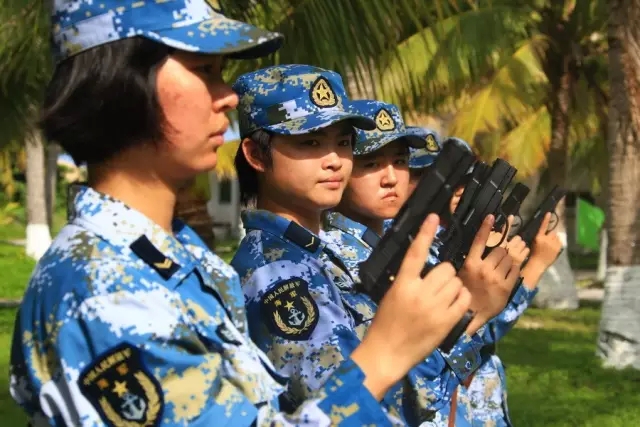 ▲英姿飒爽的三沙女兵。