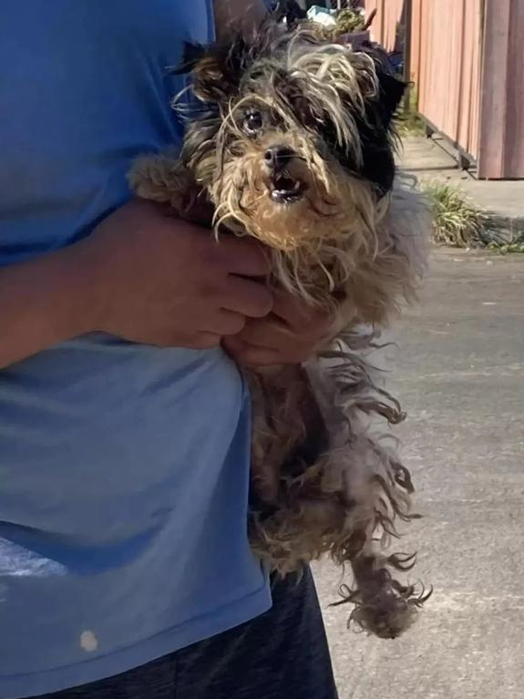 小家伙毛发打结严重,身上满是跳蚤和蜱虫,看起来急需帮助。