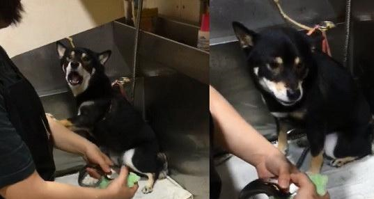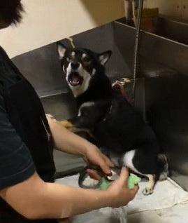 很多狗狗可能是因为小时候去美容时,有过不好的体验,所以对剪毛洗澡非常抗拒。有的狗狗要主人用零食诱骗,才肯乖乖去美容院,回家还要用零食再哄一次。有只黑柴Curry,每次到美容店洗澡的时候,总是要非常戏精叫一会儿,发泄对美容师的不满,之后在乖乖被洗澡。