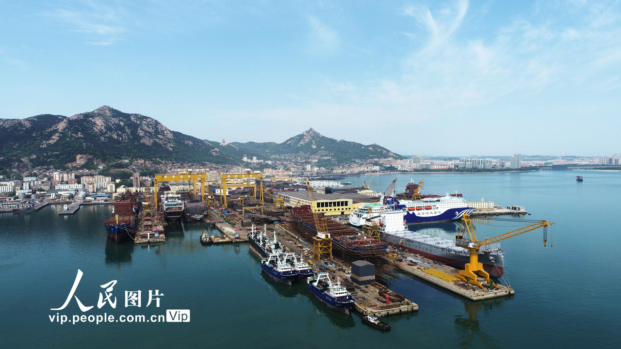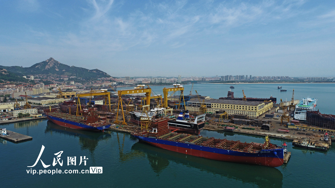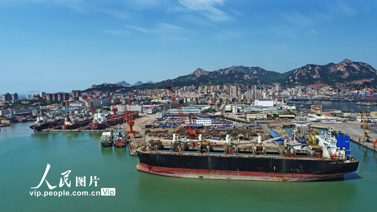 2023年5月11日,在山东省荣成市石岛管理区修造船基地船坞内,工人们抓紧建造、抢修各类大型船舶,一派蒸蒸日上的生产场景。 近年来,山东省荣成市着眼于推动船舶与海工装备产业高质量发展,加大技术创新力度,加快产品结构优化升级和优质海工资源盘活力度,强化产业链合作,带动修造船企进行技术创新,增强市场竞争能力,使船舶与海工装备产业形成产业集群。王福东摄(人民图片网)