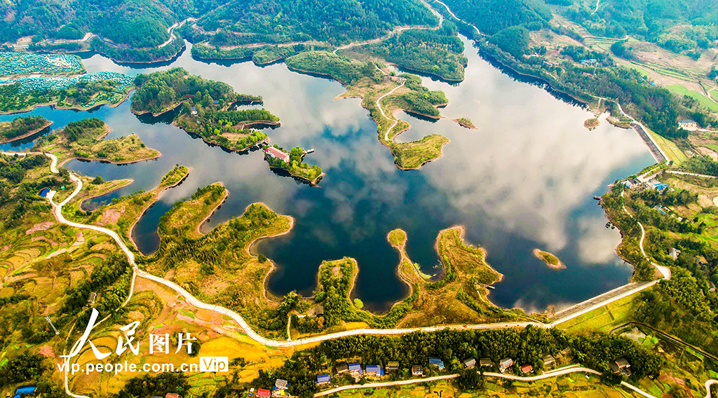 2024年1月9日,重庆市垫江县普顺镇迎风湖,柑橘、民宿、湖景交相辉映,环湖路一侧,工人在对道路进行“白改黑”。 近年来,当地依托迎风湖美丽风光,培育柑橘产业、提升湖岸景色,打造“产业+民宿+畅玩”的文旅新业态,让生态资源成为撬动乡村振兴的杠杆。并通过改善人居环境,完善基础设施、提升游玩体验等全方位夯实文旅基础,让乡村振兴驶向“快车道”,为沿湖村民创收增收。龚长浩摄(人民图片网)