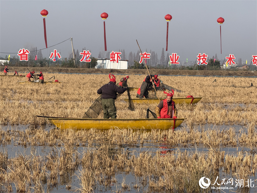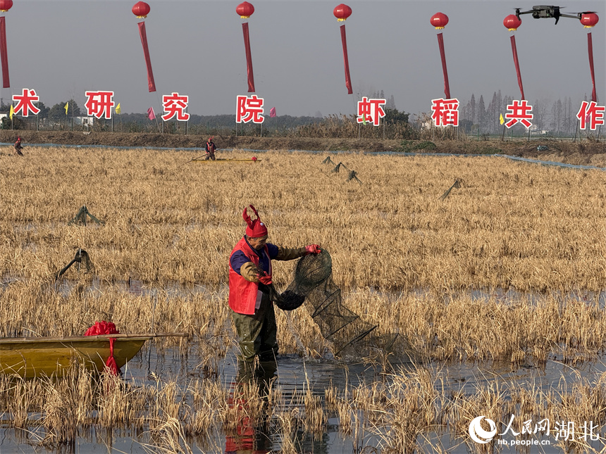 据介绍,为打破小龙虾季节性壁垒,湖北省小龙虾产业技术研究院联合中科院水生所等7家科研院所,重点攻关“四季有虾”核心技术,利用池塘底部秋冬季节较好的蓄热能力,和四季常青、适宜小龙虾养殖的水生植物组合,探索了冬虾养殖模式并制定了技术标准。目前,潜江“四季有虾”池塘精养模式养殖面积1.4万亩。2024年,潜江市在后湖管理区探索冬季稻田养虾模式300亩,成功实现了在虾稻田里养出高品质冬虾。“2025年还将开展大面积推广冬季稻田养虾。”杨运刚对记者说。
