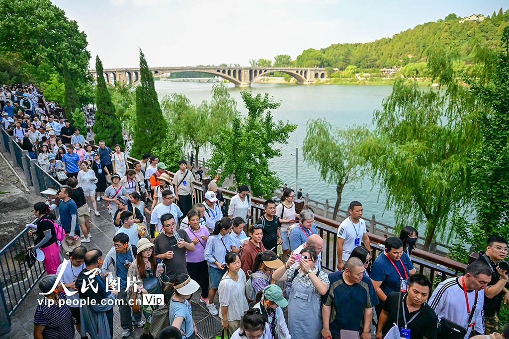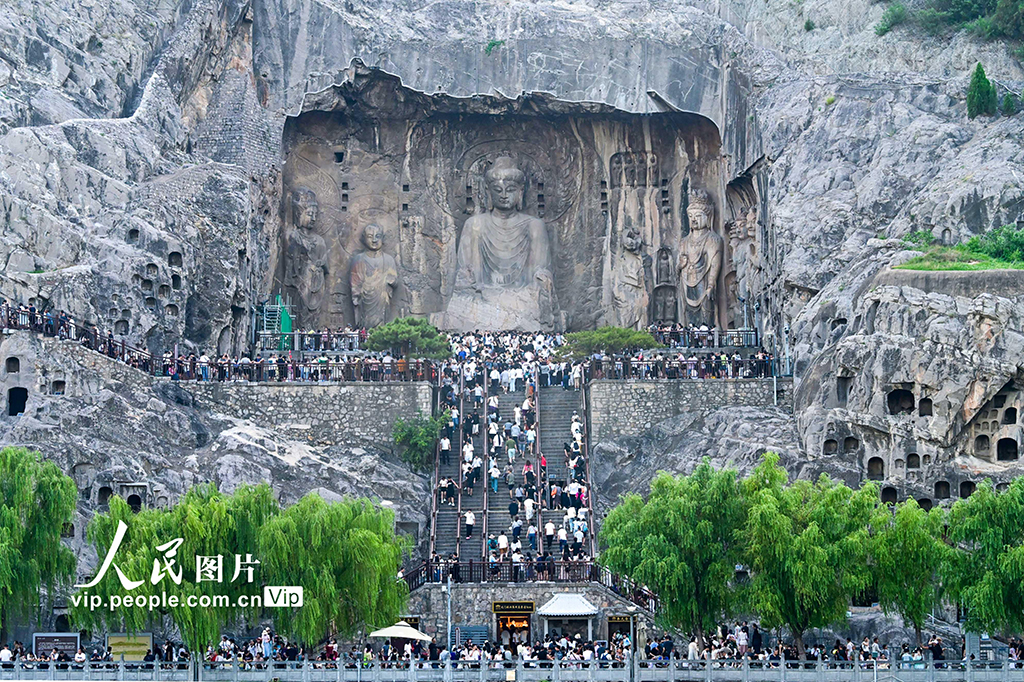 2025年7月26日,游客在洛阳龙门石窟景区游览。暑期,河南洛阳龙门石窟景区迎来旅游高峰。李卫超摄(人民图片网)