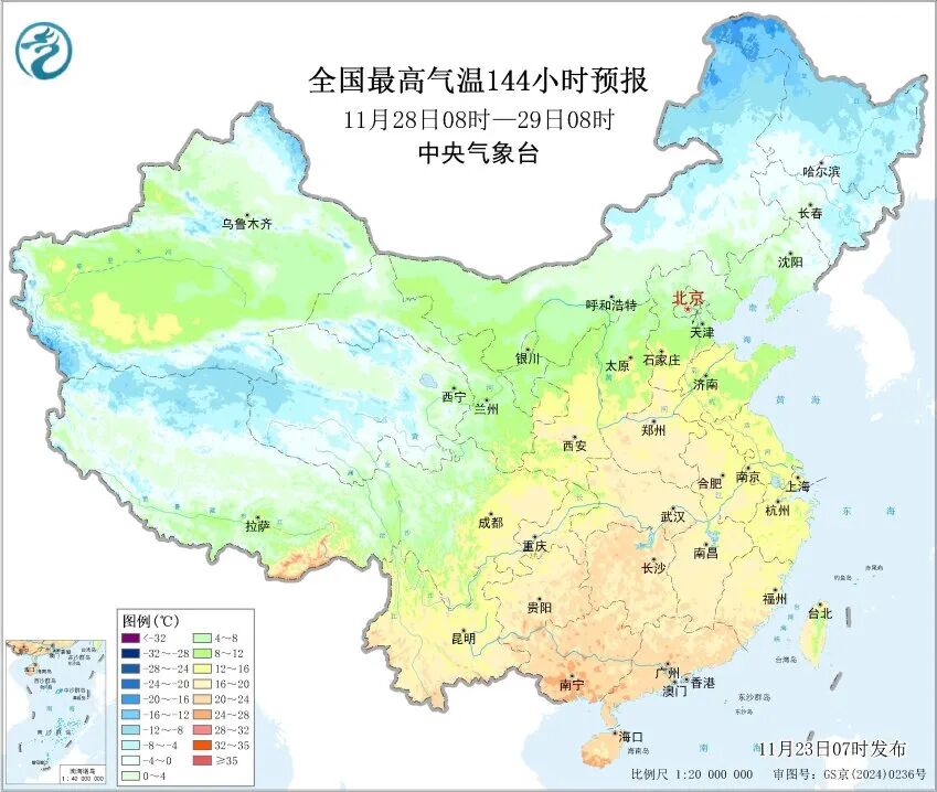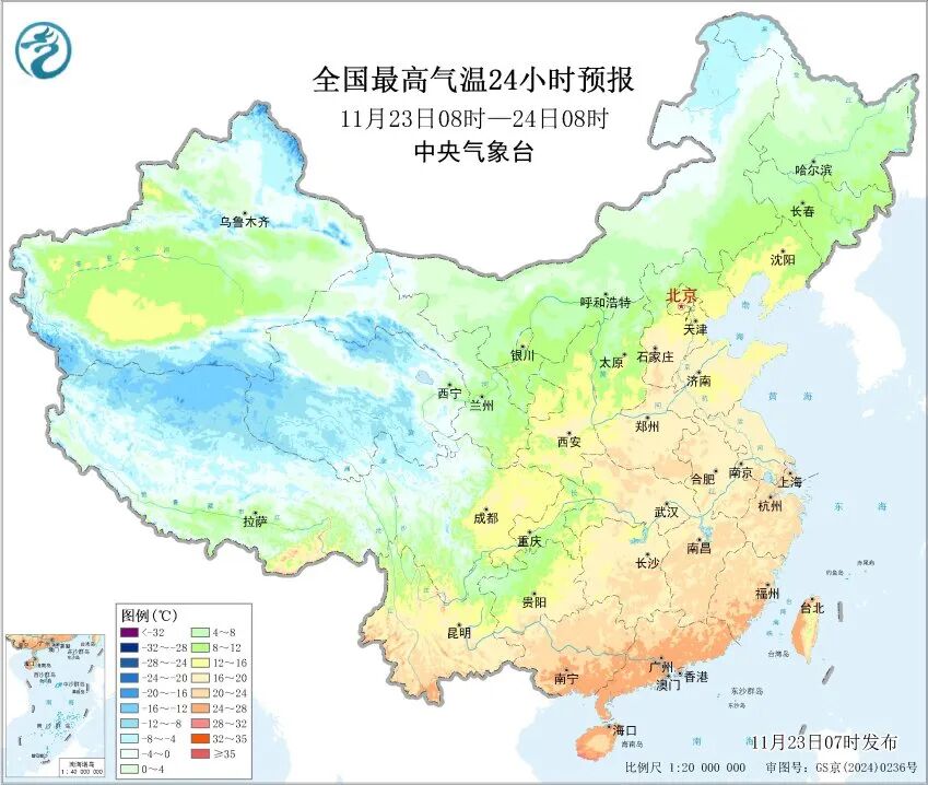 11月23日,冷空气将影响西北地区等地,部分地区将出现4℃至10℃的降温。中东部多地还会持续偏暖,最高气温15℃线可达河北中部,长江以南将普遍接近或超过20℃,部分地区温暖程度堪比常年10月下旬。