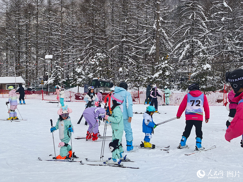 2026年1月3日,正值元旦假期,湖北神农架一家滑雪场游客众多,不少家长带着孩子体验滑雪。人民网记者 周雯摄