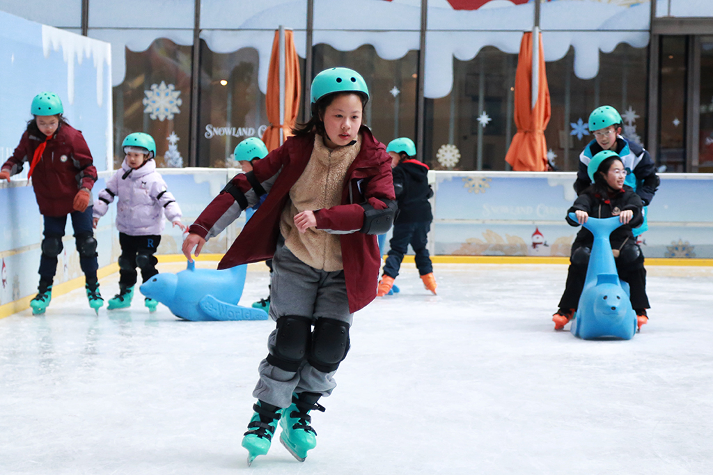 2026年1月23日,在上海陆家嘴中心商场下沉广场的乐滑之梦冰乐园内,小朋友在冰面上尽情玩耍。据上海乐滑之梦冰乐园工作人员介绍,入冬以来,冰场消费迎来旺季,除了小朋友喜欢滑冰以外,成年人体验课同样需求旺盛,95后来体验滑冰的消费者大概占比三成。人民网记者 龚莎摄
