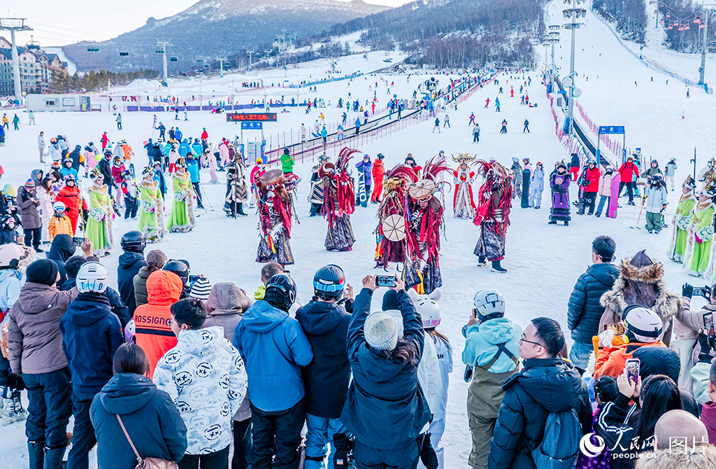 2025-2026雪季,河北张家口太舞滑雪场变身沉浸式舞台,大型民族歌舞《盛世契丹·春捺钵》首演吸引众多滑雪爱好者驻足观看。人民网记者 李兆民摄