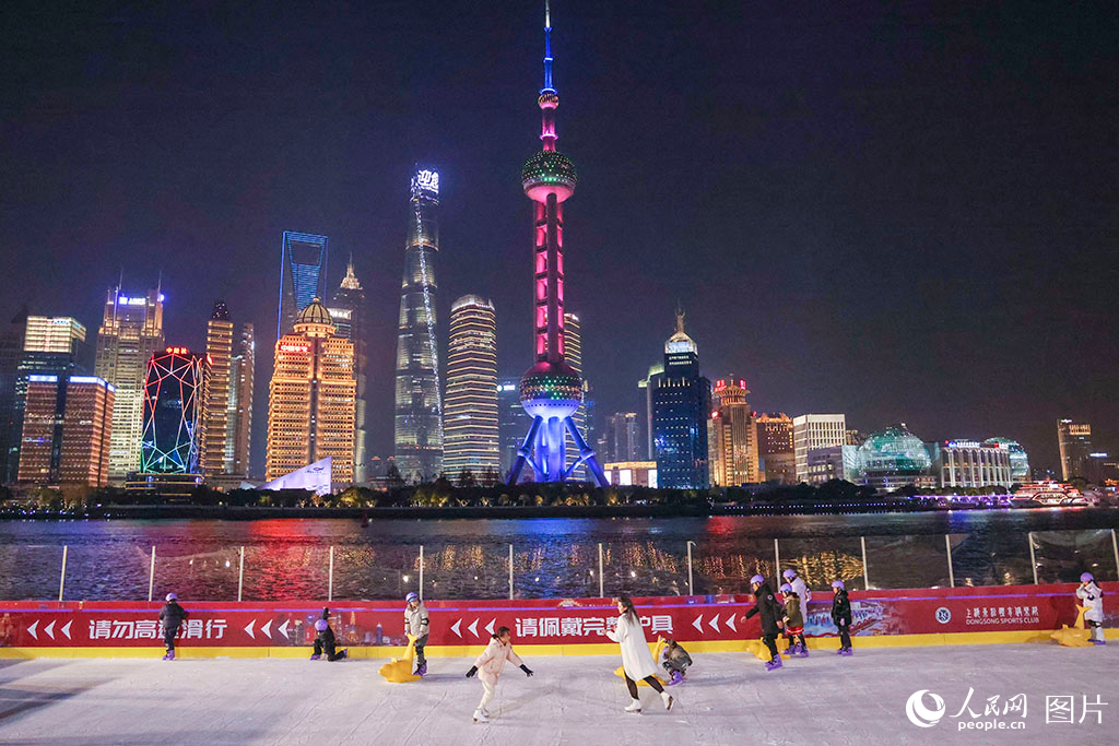 2026年1月3日,上海“2026北外滩江畔冰雪季”活动现场,市民体验滑冰。人民网记者 王初摄