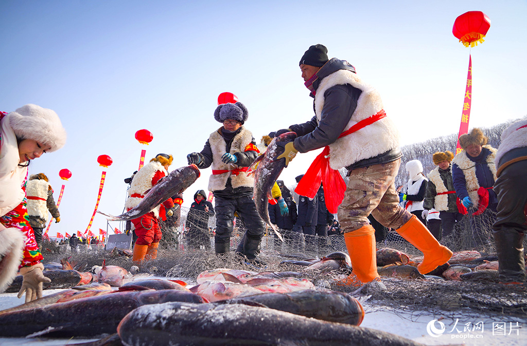 2026年1月15日,在黑龙江省牡丹江市,中国·镜泊湖第十一届冬捕节活动精彩上演。人民网记者 苏靖刚摄