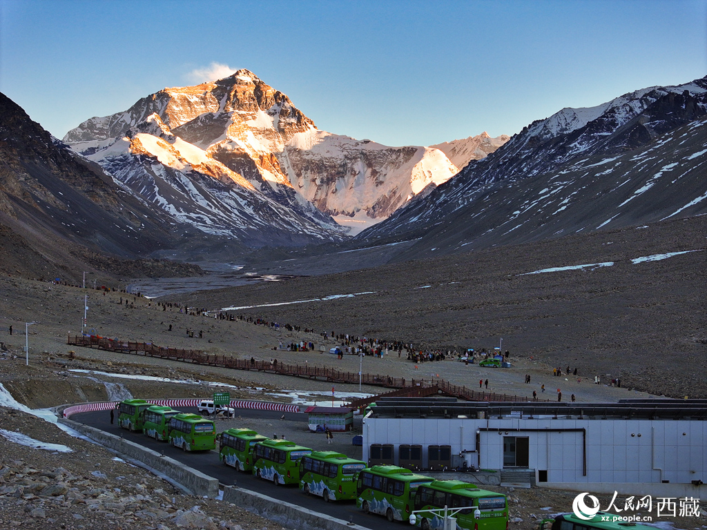 近年来,西藏日喀则珠峰景区持续加强硬件设施建设,优化旅游配套服务,着力提升游客的安全感、舒适度和满意度。随着旅游环境不断完善,前往珠峰观光体验正受到越来越多游客的青睐。 日照金山峰耸云。人民网记者 吴雨仁摄