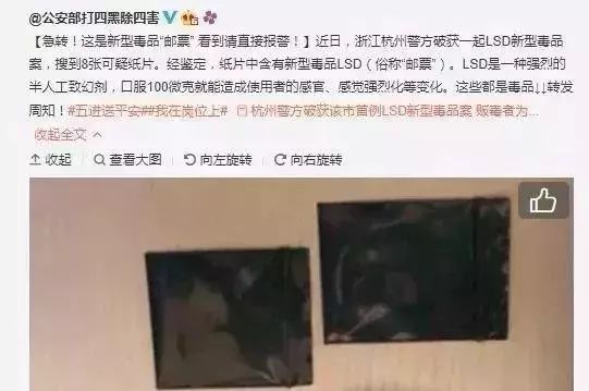 兰州公安微信公号消息,日前,@公安部打四黑除四害发布了一条关于新型毒品“邮票”的微博。
