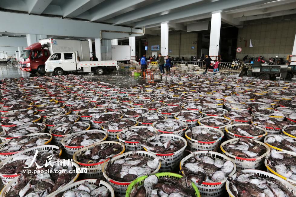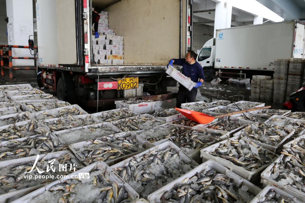 浙江舟山:海鲜销四方 2020年3月1日下午,浙江舟山沈家门中国舟山国际水产城码头上,渔运船把各类海鲜运往市场,交易场内各类鱼货正在装车运往外地。随着渔业的复工,各类海鲜丰富了市场。姚峰/人民图片