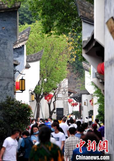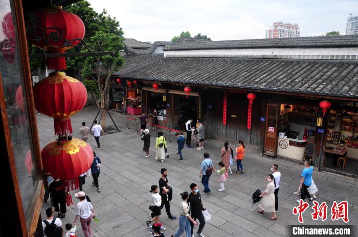 图为民众在福州三坊七巷参观游玩。 张斌 摄 5月1日,市民和游客在古色古香的福州三坊七巷参观游玩。为强化流量管理,严防人员聚集。“五一”假期期间福州三坊七巷景区内各参观景点推出线上预约功能,推行分时段游览预约,引导游客间隔入园、错峰旅游。