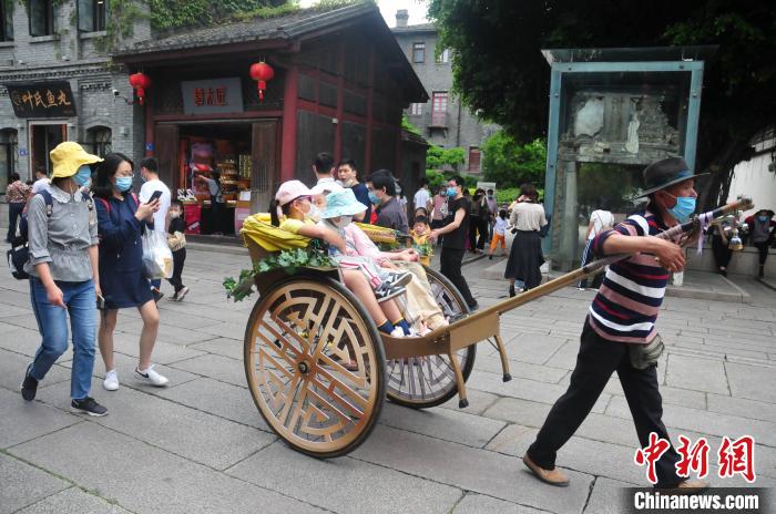 图为市民坐黄包车游福州三坊七巷。 张斌 摄