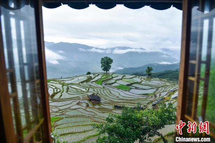 6月4日在广西龙胜各族自治县泗水乡泗水村小岩底屯一家农家旅馆拍摄的窗外景色。 吴生斌 摄