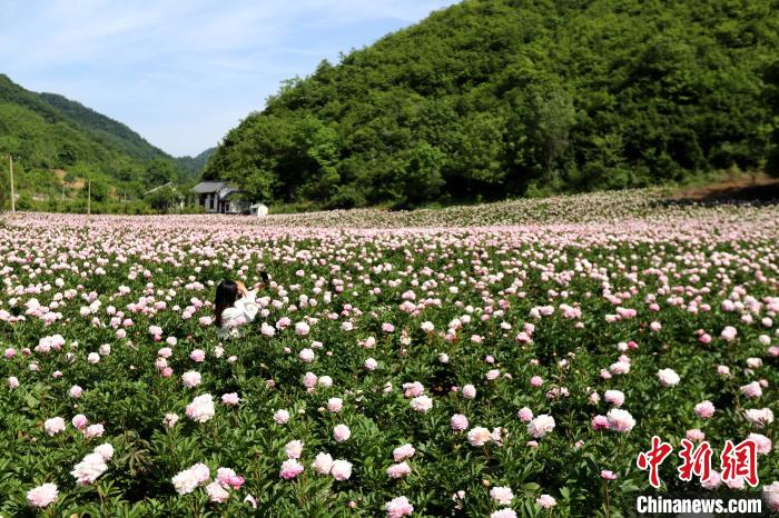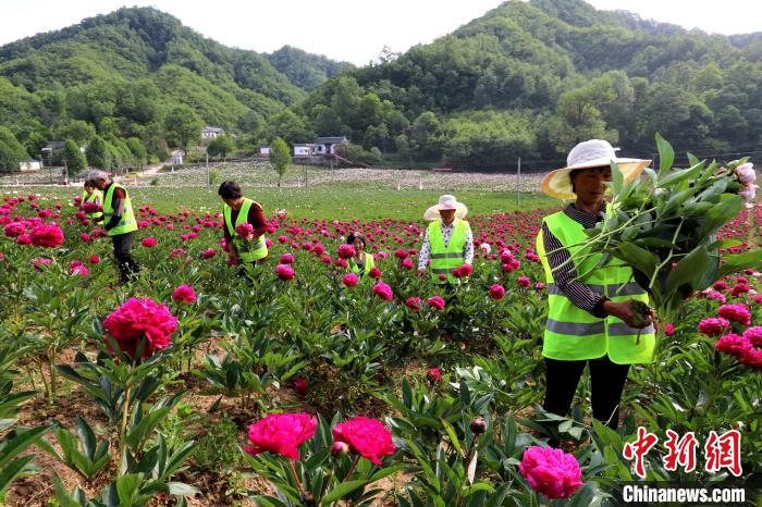 图为村民的房前繁花似锦 王中举 摄 6月5日,河南省洛阳市栾川县赤土店镇九鼎沟千亩高山牡丹芍药国际鲜切花出口基地,满眼的牡丹芍药竞相开放争奇斗艳,花农正对牡丹芍药进行鲜切采摘,享受丰收的喜悦。目前该基地种植的牡丹、芍药鲜切花除满足国内市场,还大量销往大洋洲、欧洲等地。近年,栾川县通过发展高山牡丹、芍药种植基地,拉长产业链,助力乡村振兴,带动百姓脱贫致富。